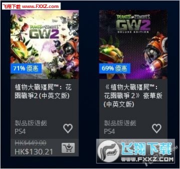 《植物大战僵尸:花园战争2》:29折,130.21港币(折合人民币116.26元);豪华版31折