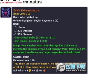 魔兽世界新橙装扎克的屠杀令彩蛋致敬热播美剧西部世界 来源: 飞翔小编 2016/12/2 11:22:37 浏览量:416 魔兽世界的设计Jeremy Feasel非常喜欢西部世界,并且在推特上直接表示“西部世界第二次看会非常有意思。” 而在魔兽世界测试服最新版本7.1.5.23109更新的橙装中有一件“扎克的屠杀令”,其中的文字说明就是来自于西部世界。 鸨傲天:you think i‘m scared of death? i’ve done it a million times。 I‘m fxxking great at it! how many times have u died?
