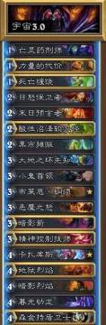 新版本更是让神抽狗兴奋不已,每一个职业都要尝试一番。在之前的专业级别卡组评分中,安妮表示宇宙术获得了史无前例的buff,前期中期后期都获得一定程度的加强,增加了制胜因素,因此他迫不及待的赶紧试一试,经过数次调整,下面是最终成品卡组,