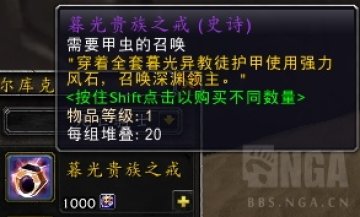 高级风之石:需要暮光教派的三件装备。以及暮光信徒身份徽章,暮光贵族之戒。你能召唤卡苏姆男爵 <高阶深渊议会>大元帅维拉希斯 <高阶深渊议会>斯古恩男爵 <高阶深渊议会>斯卡德诺克斯王子 <高阶深渊议会>,这些需要一个稍大一些的团队来击杀。