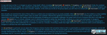 最后一搏这个技能是有点特殊的,我们发现复仇DH觉得他们在面对一些大伤害的时候有些依赖这个技能,我们还会在观察他们是否还需要一些其他改动来作为补偿(比如在PTR,他们的耐力加成提高了,基础伤害减免也提高了,并且有一个更强的恶魔变身效果)。对于炼狱这个技能,他的CD提高最少是因为炼狱触发后是有条件的,当然这现在也更加可靠,这个效果现在总是会持续3秒,不管你是否在这段时间血量瞬间超出0点。
