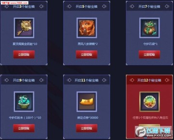 5、秘宝箱抽奖为不放回抽奖,即开启12次后,必得所有奖励;