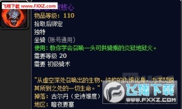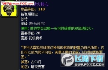 击败史诗古尔丹会获得头衔“复仇化身”还会100%掉落坐骑“魔化炎狱核心”;除了随机难度以外所有难度都有很小的几率掉落“活性地狱火核心”。