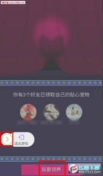 点击出现的【我要领养】,一只原始宠物出现,可以在下方选择外形和面部,分别都有四个选项,选好点【领养】。