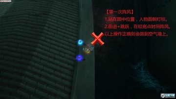 三.第一次阵风位置与操作,先起跳再阵风,成功则会跳到空气墙上。