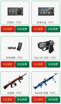 2016年12月23日-2017年1月2日,玩家可在CF限定道具0元购活动网站上领取7天武器,并获得该武器的续费优惠。