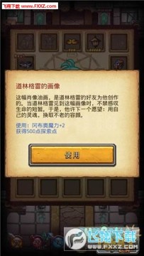道林格雷好友为其创作的肖像油画,道林格雷见之,感叹生命之短暂。于是他许下愿望:用自己的灵魂换取不老的容颜。使用后能够增加2点魔力,获得500探索点。
