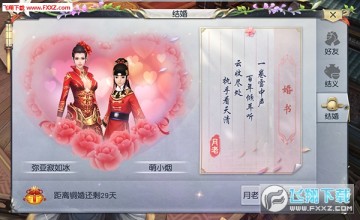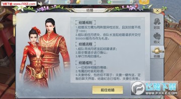 前往天阙王城找月老发起结婚请求,如满足条件会获得通过结为情缘,同时在朋友们的见证下举行热闹的婚礼。