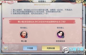 在申请结婚后,我们可以看到要求双方同意结婚的按钮!在双方都点击确认后,正式进入结婚的流程。