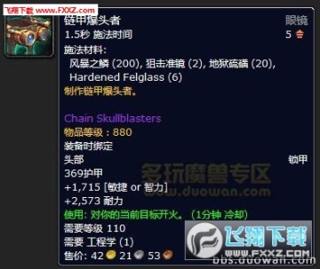 肩膀附魔掉落的宝箱包括枪械和枪械零部件,工程学消耗品,新的护目镜图纸,以及用以制作新护目镜的材料,硬化邪能玻璃