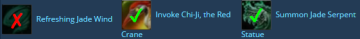 复苏之雾:单目标20秒持续hot,当造成过量治疗时可以跳到受伤的其他目标。通常,你需要卡cd丢这个技能。