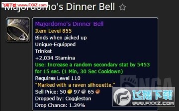 虽然说随机提高5000多属性其实是根据你吃的食物种类来的,375精通食物会100%触发5000+精通,而且战斗前使用换下来不会取消buff,这是在卡精通快照被修复以后唯一起手偷高精通的手段,因为持续时间问题推荐和混乱之刃完美契合起来。有条件一定要入手,非常强大的饰品。我不同意很多论坛上朋友们对卡铃铛方法很不屑的态度,这是一种合理的手段既不是bug也不是骗伤害,这个5000属性任何职业都可以受用,但是DH有混乱之刃这种天赋所以提升才这么大,职业优势而已,为何不用?