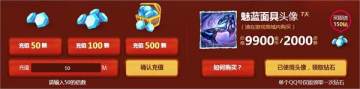 1在活动页面上使用Q币充值钻石,5Q币充值50钻石。在游戏客户端购买并使用魅蓝面具头像,赠送150钻石,单个大区头像只限购买一次。充值的钻石会在页面上显示。