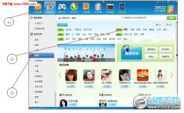 我们可以看出,360软件管家的面板分为三部分,上面的导航栏,左侧栏和中间的主体部分。我暂且把这三部分称为top,left,和main。top中实际上就是结构导航(也叫全局导航),left中是二级局部导航(旨在为用户提供最方便的快捷操作),main中的上面部分是三级结构导航。这样做的好处就是信息分类明确详细,很好的引导用户进行操作,不好的一面就是导航项太多而导致看起来很混乱,而且交互流程的层级变多,违背了交互中尽量减少交互流程的原则(我们说在交互设计中尽量对流程做减法,多一个流程就会流失一部分用户)。比如我要在软件管家中找华语音乐,那么我得首先在top中找到软件宝库,然后在left中找到音乐,然后在main的上面找到歌手中的华语音乐,如下图所示,这样的交互流程未免太繁琐了。