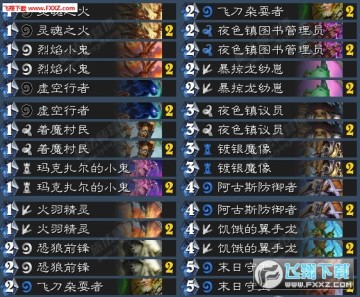 后手--着魔村民、火羽精灵、烈焰小鬼,2费就是暴掠龙幼崽,特别建议先手两个着魔村民,这样能够最大化的可能激活暴掠龙幼崽,1费跳硬币出两个2费,2费上幼崽这样的节奏就是非常的赚,也是我们强调的将场面转化为随从的质量!