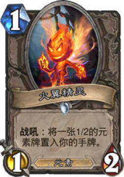 火羽精灵:1费1/2的身材是站场的一个良好保证,不容易被其他的职业轻易的利用英雄技能处理掉,因此这是一张非常好的铺场卡牌,站住场面之后对于我们后续的滚雪球帮助很大,而且也能够补充手牌的随从,是我非常推荐的一张卡牌,这张卡牌我认为在目前的环境中强于圣盾兵,同时也可以搭配飞刀,或者议员来使用。