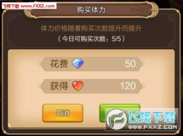 当玩家将原有的体力资源都消耗完毕之后,可拥有5次体力购买的机会,花费钻石500钻石购买600点体力,换取600点经验值!