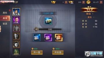不同品质的兵书通过不同品质的兵书残卷激活,激活后军师获得专属兵书。兵书消耗兵书残卷可以进行升级,升级后将获得战力提升。