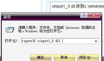 xinput1_3.dll 放到c:\windows\system32 之后你开 开始菜单运行输入: