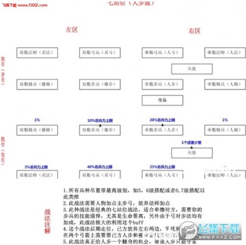 战法注解:此种战法是经典的七站位战法,适合单撸对方,需要你的步兵的技能强悍,尤其是生命要高,另外由于弓对步法均有加成,此战法极大的利用这个buff。