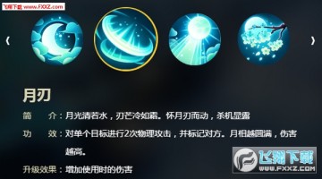 月刃:对单体目标进行2次物理攻击,并标记对方。月相越圆满,伤害越高。
