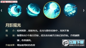 月影摇光:物理攻击3个敌方目标,优先攻击被月刃标记的目标。月相越圆满,伤害越高。