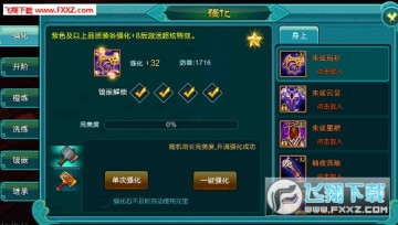 从商城花费元宝购买强化石,使用藏宝库得到升阶石。能够让你获得的极品装备进行强化和升阶,提升人物大量战斗力。