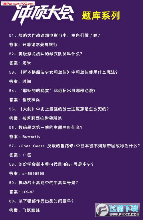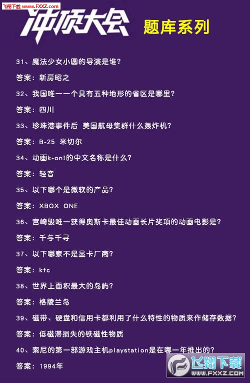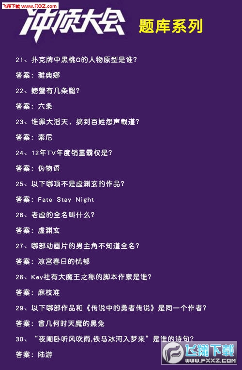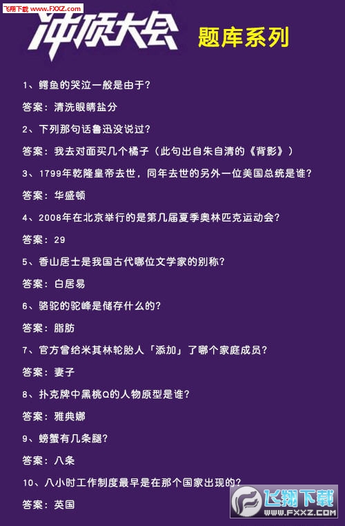 适用范围:冲顶大会答题栏目 ★★☆☆☆