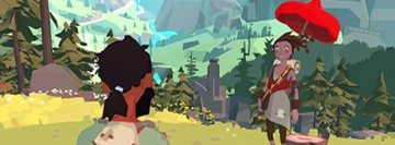 《边境之旅》的内容就是步行、生存与经营模拟的混搭,《边境之旅》讲述了一个来到新大陆的旅人的故事,他衣衫褴褛、一无所有,开始了前往伊甸瀑布长达5000千米的旅途,他打算定居在那里,开始建造一个新的未来。这段路是需要玩家一步步走过的,行走占据了游戏的绝大部分内容。抵达伊甸瀑布的这段旅途中,玩家就在一条固定的路线上行走,翻山越岭,穿江跨湖,沿路是气候和植被变换的数十种地形地貌,雪山、森林、草地,色调犹如四季变幻,原本为节省成本的低多边形风格(Low-Poly),在这里却恰如其分,大片的色块渲染、几何图形的拼贴,令人心情愉悦。一路上还有鸟语花香、潺潺流水,很悠闲很自在,就像是在大自然里进行一场漫步。