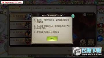 每天有3点疲劳值,每次击杀boss获得掉落道具都会消耗1点,疲劳值消耗完就不能再攻击世界boss,疲劳值在次日0点重置。