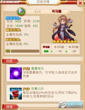 司马懿基础属性比普通七星武将多加%10。PVE副本技能雷暴旋风能对敌人造成多次法术伤害!兵种是军师,群体攻击带燃烧效果,在副本能把集中在一起的怪统统消灭掉。竞技场技能加强%35的攻击力下降%20的防御,技能仅次于神将吕布之下!