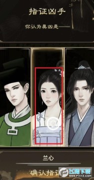 17. 第三个问题可疑的事件如图进行摆放,之后在皇上面前指认凶手,在这里选择凶手是兰心。