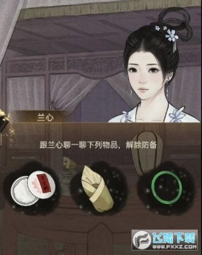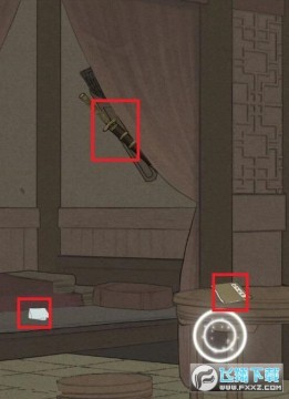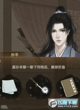 14. 之后前往孙辛的房间当中,在房间当中在桌上可以找到孙子兵法,在床上可以得到兰心的手帕,以及破损的刀具。之后就可以使用这些物品和孙辛进行交谈。