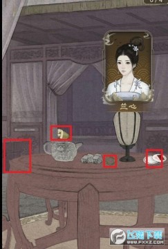 10. 出来前往御书房在这里和桂公公进行对话,之后会和皇上进行对话。之后会解锁皇后的寝宫,兰心的房间,孙辛的房间。之后前往皇后寝宫。在房间当中可以找到精致的盒子,剩余的滋补汤还有石头。