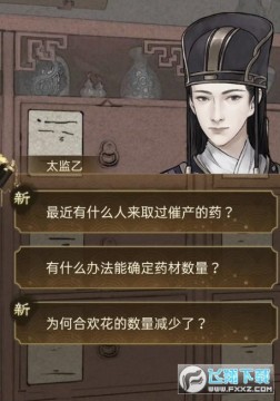 7. 之后前往御药房,点击太监乙进行对话,之后可以有两个选项进行询问。