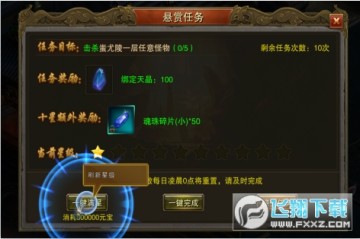 悬赏任务为简单的杀怪任务,只要消灭指定怪物就可以快速完成啦。接取任务前,只要花费少许金币就可以刷新任务星级,星级越高,完成任务可以获得的奖励就越多,建议各个玩家最好刷新任务为满星后再接取。