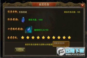 每日可以完成10次悬赏任务,获得海量天晶和魂珠碎片奖励