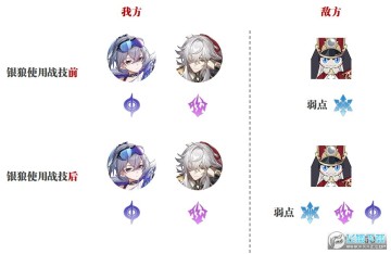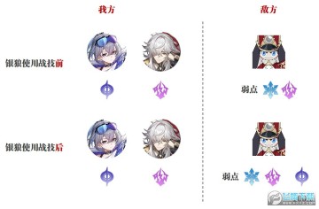 然后如果还是上面这个情况,只是对方原本只有冰系弱点,暂时还没有雷系和量子系弱点中的任何一个,则银狼首次使用战技后各有50%的概率给对方施加雷系或者量子的弱点,这便是银狼战技施加弱点的一个基础逻辑。
