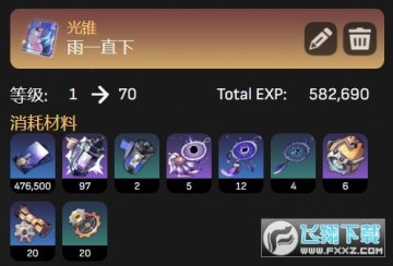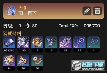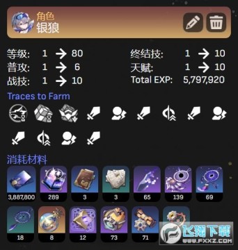 按照目前大部分玩家的队伍等级都已经超过50级来计算,角色的等级上限应该是70-80级,所以下图也明确的计算了银狼从1级培养到70级或80级的过程中需要消耗的资源总数,大家可以重点参考一下。