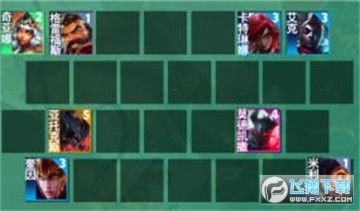 1:阵容由琪亚娜,艾克,米利欧,格雷福斯,奎因,莫德凯撒,卡特,剑魔组成的;
