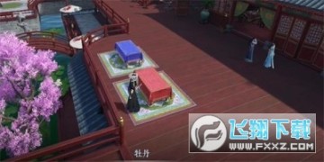1、前往甜水巷,找到牡丹,初始文房四宝;
