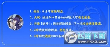 它是一名辅助,它可以给队伍增伤和提高效果命中率,也可以让敌人减少防御,让我们被敌方攻击到的伤害变为最小。