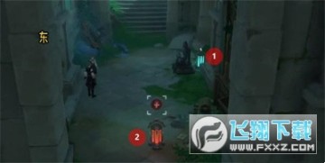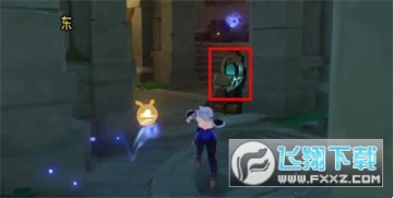 2、进入遗迹内部,启动下图机关,再去内湖取得红色装置;