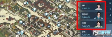 2、首先我们需要先在汴京分别与澜儿、苏清寒和章朗对过话,和下图一样把他们的结识标志都弄出来,方便我们找人。