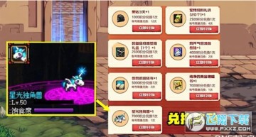 黑钻3天需要1000分,宠物饲料20个需要2500分,装备品级箱1需要2500分,异界气息清除券需要4000分,变异的扭转书需要5000分,纯净的黄金增幅书需要7000分,最后就是我们最想要的星光独角兽需要玩家们的7000积分。