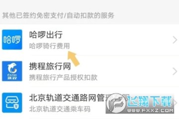 点击进入免密支付选项,找到哈啰出行选项。如下图: