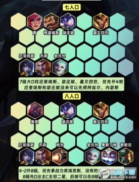 4-2升8级,优先拿战力海克斯,其次学有所成,8级找阵容二星四费卡,五费卡替换低费卡,之后在8级追三星四费