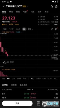 4、在trump币实时价格的详情页,点击左下方的“交易”;