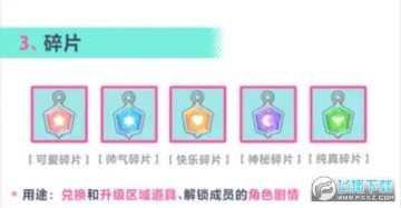 成员养成相关道具:1、心愿碎片,用来升级角色专家等级。2、心愿结晶,主要用来提升4星成员专家等级,40级后用来提高四星角色的技能等级。3、碎片,主要作用是兑换升级区域道具,解锁成员的角色剧情。4、晶石、奇迹晶石,这两个的作用其实在前文已经阐述过了。