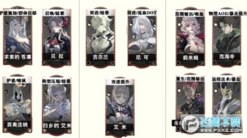 归乡的艾米(新月,阵型压缩/眩晕):能压缩阵型、眩晕敌方,控制与调整敌方站位。吉尔兰(残月,突进/破暴):突进+破暴,可切场、限制敌方暴击输出。